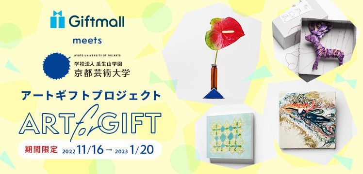 学校法人瓜生山学園 京都芸術大学(京都市左京区/学長吉川左紀子、以下京都芸術大学)と株式会社ギフトモール(本社:東京都中央区、代表取締役:藤田 真裕)は、アート作品をギフトとして販売する企画「ART for GIFT」に取り組み、京都芸術大学に所属するアーティスト11組によるアート作品52点を2022年11月16日(水)よりGiftmall(ギフトモール)にてオンライン販売を開始します。