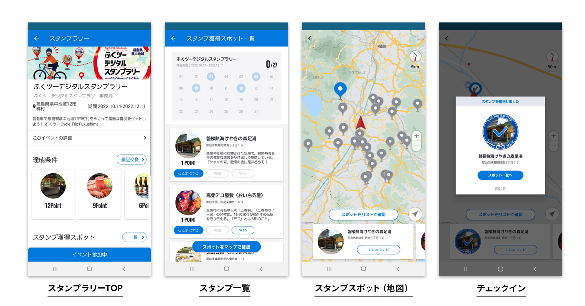 福島県県中地方振興局(局長:中島 博、所在:福島県郡山市)、特定非営利活動法人まざっせKORIYAMA(理事長:宮川 雄次、所在:福島県郡山市)、株式会社ナビタイムジャパン(代表取締役社長:大西 啓介、本社:東京都港区)は、2022年10月14日(金)より、自転車ナビゲーションアプリ『自転車NAVITIME』を用いて「ふくツーデジタルスタンプラリー」を開催します。