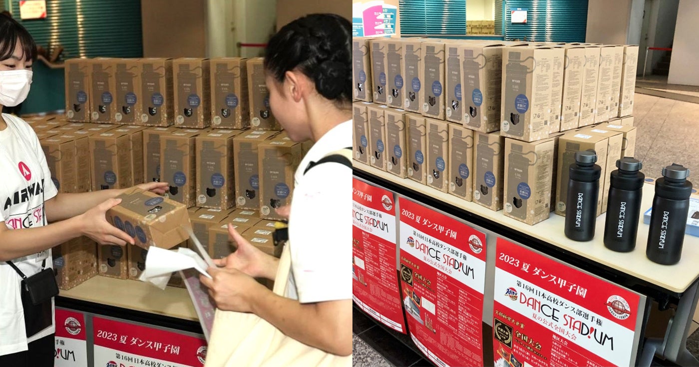 2023年3月に実施した第1弾で、「部活動の先輩たちにボトルをプレゼントして感謝の気持ちを伝えたい」等、多くの方から寄せられた熱いコメントを受け、当社では学生生活の必需品であるボトルを通し、学生を継続的に応援していきたい気持ちがより一層強くなりました。そのような状況の中、前回のキャンペーンをご覧になった高校ダンス部選手権事務局様より、学生たちを応援する企画を一緒にできないかとのお声がけをいただき、第2弾が始動。ダンスに青春を捧げ、熱い想いで日々練習に取り組んでいる学生たちに、ぜひボトルを使って、練習・大会の合間にリフレッシュしていただきたいという想いから、出場者2,169名全員に、大会オリジナルロゴ入りの真空断熱炭酸ボトルMTA-T050をプレゼントさせていただく運びとなりました。