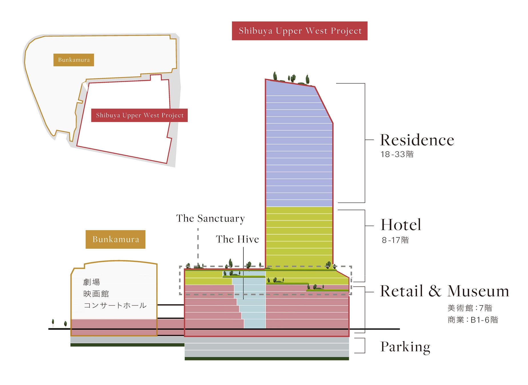 そして、歴史あるこのエリアに位置する本プロジェクトは、日本初の大型文化複合施設として誕生以来、36年に渡り文化の「発信」「創造」「交流」「育成」を担ってきた隣接するBunkamuraとの融合を図ることで、本格的な文化・芸術、本質的な豊かさを志向するこの土地に根付いたDNAを継承し、次の時代へと引き継ぐ、新たなランドマークとなります。