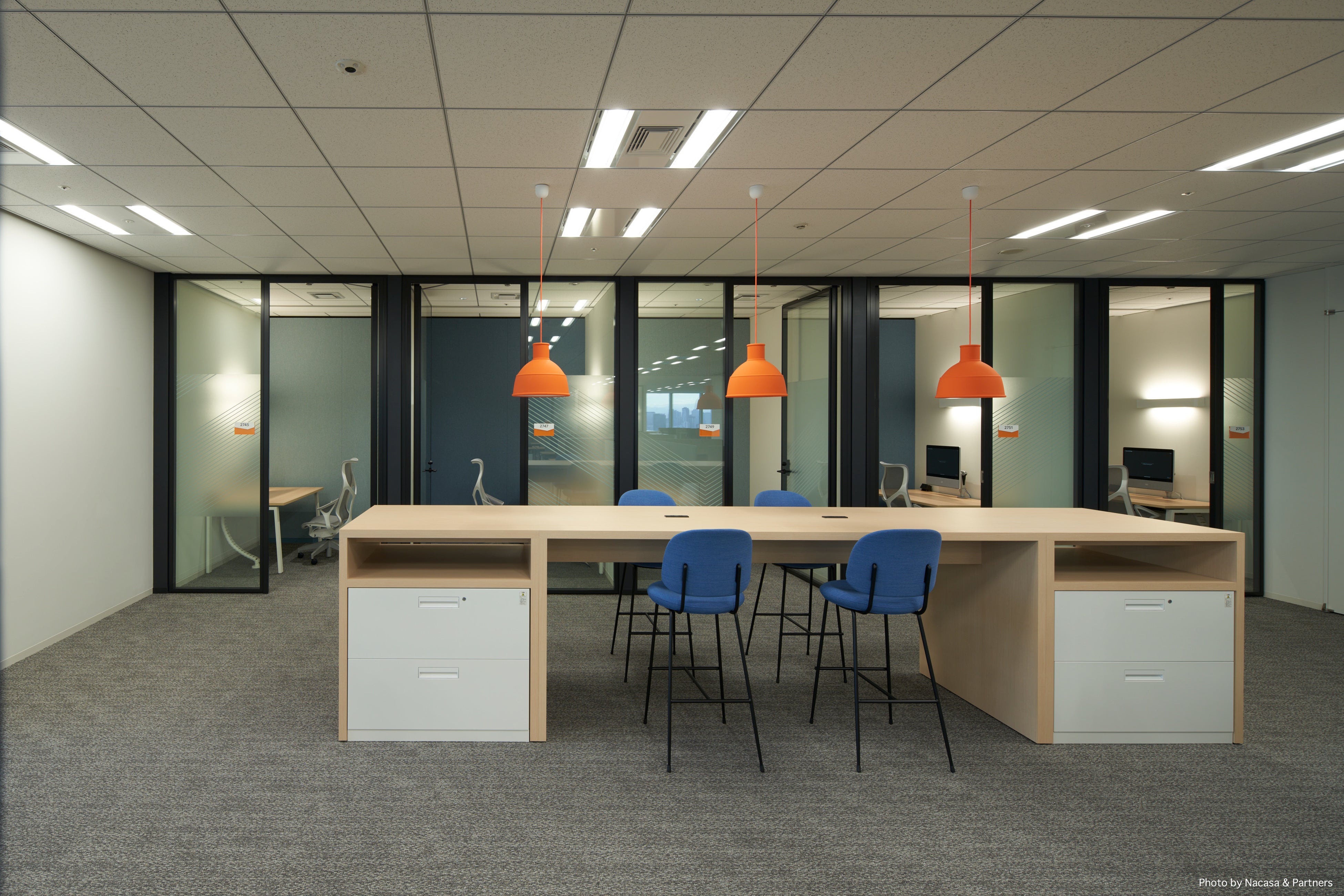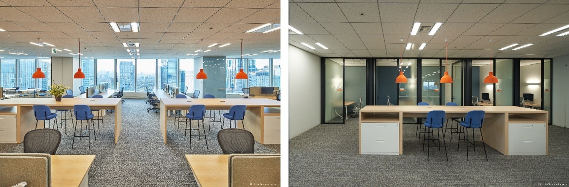 ・最新のビデオ/リモート会議装置を備えたフォンブースを数多く設置。これは、海外のオフィスや、在宅ワークの従業員、そしてお客様とリモートでいつでもシームレスにつながることができる、次世代のワーク&コラボレーションプレイスを強く意識したものです。