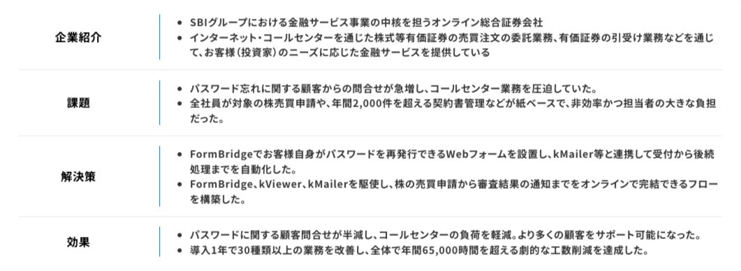 ▲出典:kintone連携サービス by トヨクモ 契約書照会をはじめとする社内の事務手続きを効率化!直感的なインターフェースで現場メンバーが使いやすい業務システムを構築したSBI証券の事例