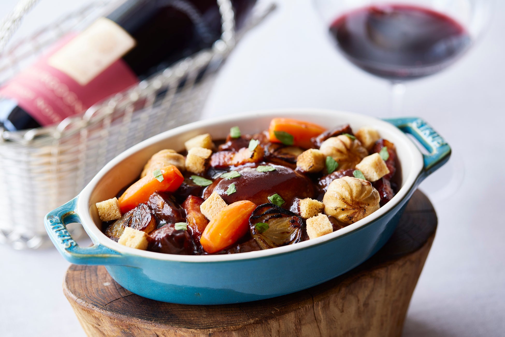 サウナで大量の汗をかいた後は、とっておきのサウナ飯を味わえます。当ホテルのソムリエ厳選の赤ワインを使用した、フランスの煮込み料理「ブフ・ブルギニョン」を用意しました。濃厚な赤ワインと野菜の味わいが、ととのった体にじんわり染みわたります。