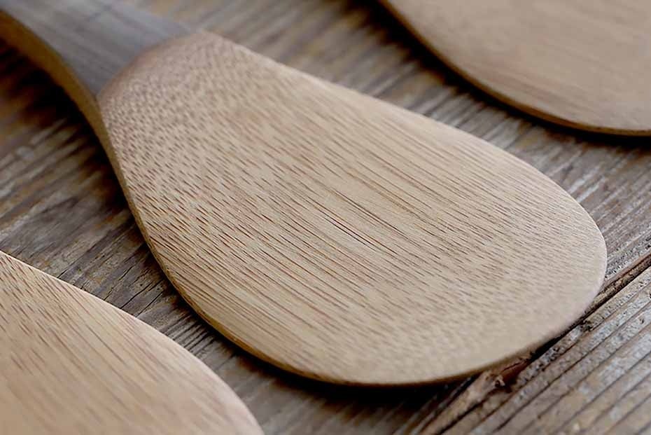 しゃもじとしての使い心地にも、こだわりが詰まっています。竹は、外皮に近いほど繊維が密で強度があり、しなやかさと軽さをあわせ持つ素材。このしゃもじも、強度を保ちながらも持ちやすく、ご飯をふんわり優しくすくえる絶妙な厚みに仕上げられています。