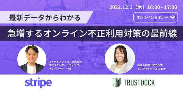 TRUSTDOCK × Stripe、「急増するオンライン不正利用対策の最前線」ウェビナーを2022年12月1日に開催