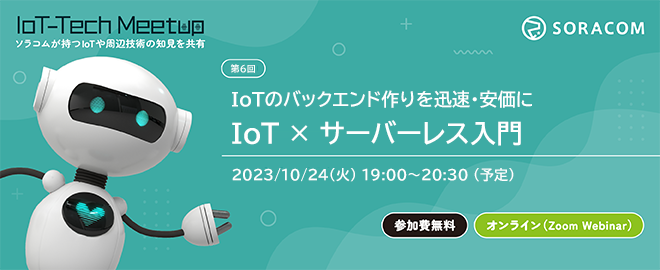 「IoT-Tech Meetup」は、IoTプラットフォームを提供するソラコムが、IoT周辺の技術トレンドと、ビジネスでの活用を踏まえたTIPSやアイディアを、主にエンジニアの方にご紹介する無料のオンラインセミナーシリーズです。2023年5月からスタートし、「ChatGPT × IoT」、「IoTで使える衛星通信」、「オープンソースVPN WireGuard」といった、関心の高い話題をテーマに開催しています。