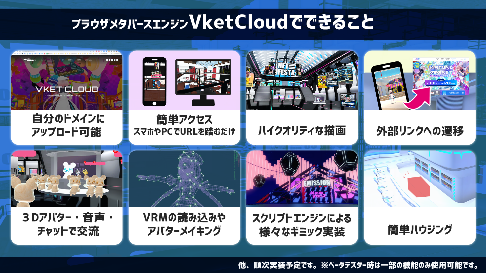 株式会社HIKKY(本社:東京都渋谷区、代表取締役:舟越靖、以下HIKKY)は、HIKKY独自のメタバース開発エンジン「Vket Cloud」(読み:ブイケット クラウド)のロードマップを発表いたします。将来的には、地方自治体や学校への無償提供も予定しております。また、本日よりベータテスターの二次募集を開始いたします。
