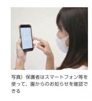 「園児台帳」「出退勤管理」「おしらせ配信」等をスムーズに管理。保護者との連絡も簡単に。市内の公立園全園でICT使用率100%