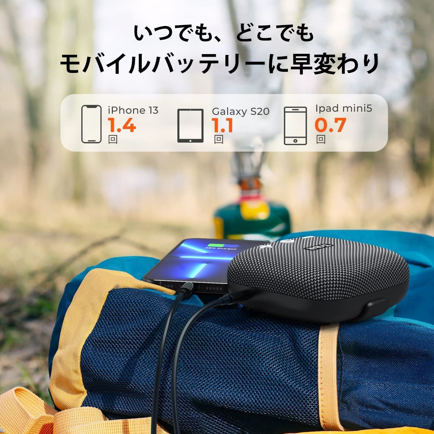Tribit独自のRunStretchテクノロジーにより、音楽に合わせる最適な電流・電圧を提供し、低消費電力化をしたことで、12時間の連続再生を実現しました。またUSB Type-Cの出力ポートを搭載しており、音楽を再生しながらスマホの充電ができます。