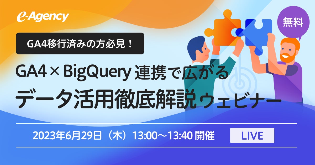 【無料LIVEウェビナー開催】GA4移行済みの方必見!GA4×BigQuery連携で広がるデータ活用を徹底解説|株式会社イー・エージェンシー