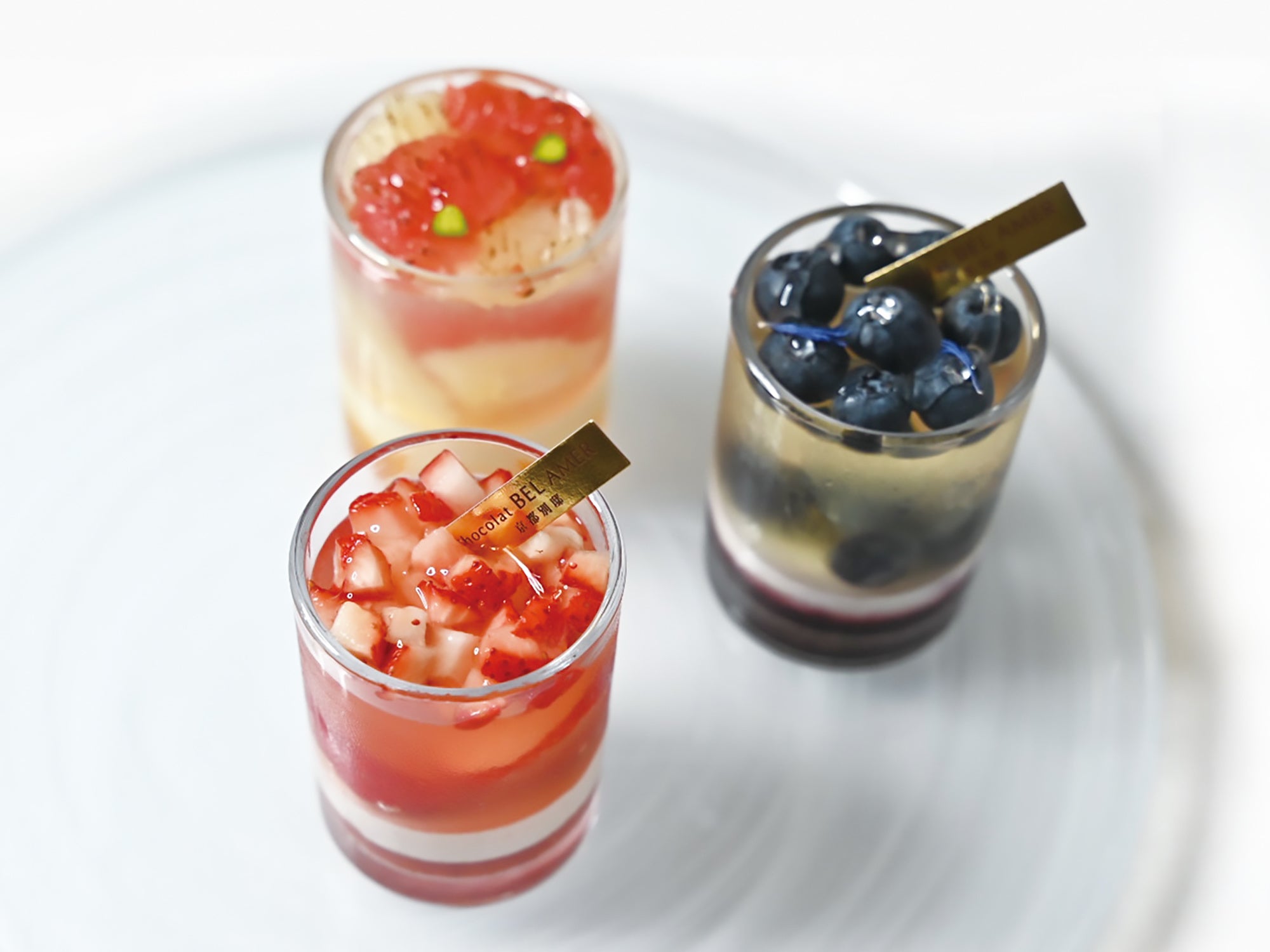 ホワイトチョコのなめらかなブランマンジェに、フレッシュフルーツをたっぷり入れた爽やかなジュレを合わせました。