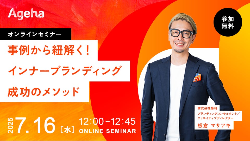 コーポレートブランディング支援を行う株式会社揚羽(東京都中央区 代表取締役社長:湊 剛宏 証券コード:9330)は、2025年7月16日(水)に「事例から紐解く!インナーブランディング成功のメソッド」と題したオンラインセミナーを開催します。セミナー詳細はコチラ。