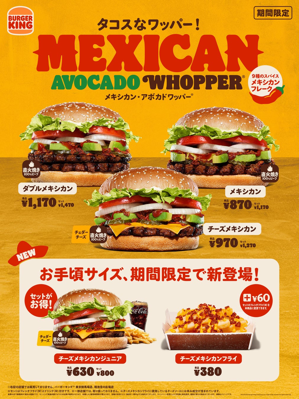 アボカド好きの皆様も、「メキシカン・アボカドワッパー® 」をジュニアサイズで楽しみたかったファンの皆様も、サイズも価格もお手頃な『チーズメキシカン アボカドワッパー® Jr.』と、『チーズメキシカンフライ』をぜひこの機会にお楽しみください。
