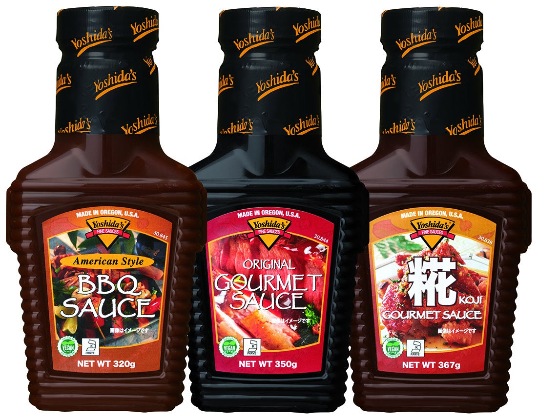 アメリカ生まれの日本の味「ヨシダグルメのたれ」、これ1本であらゆる料理に使用できる万能調味料です。オリジナル、スパイシー、BBQソース3種類ご用意しました。