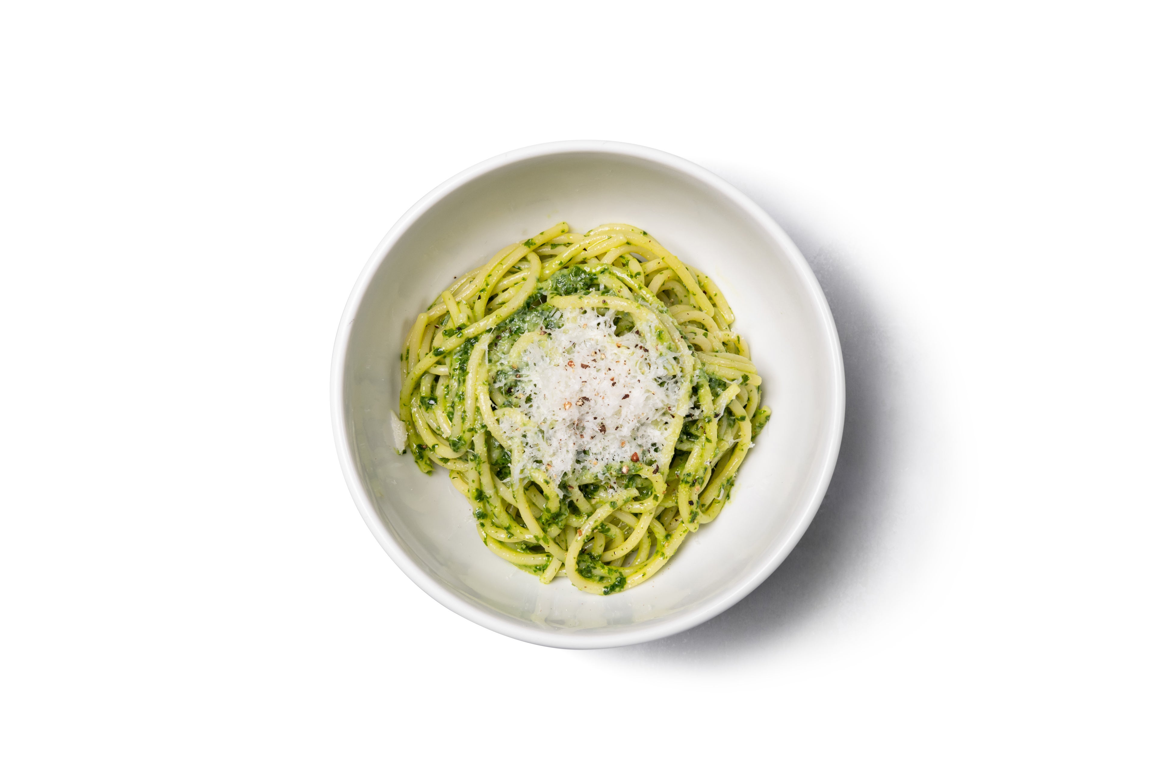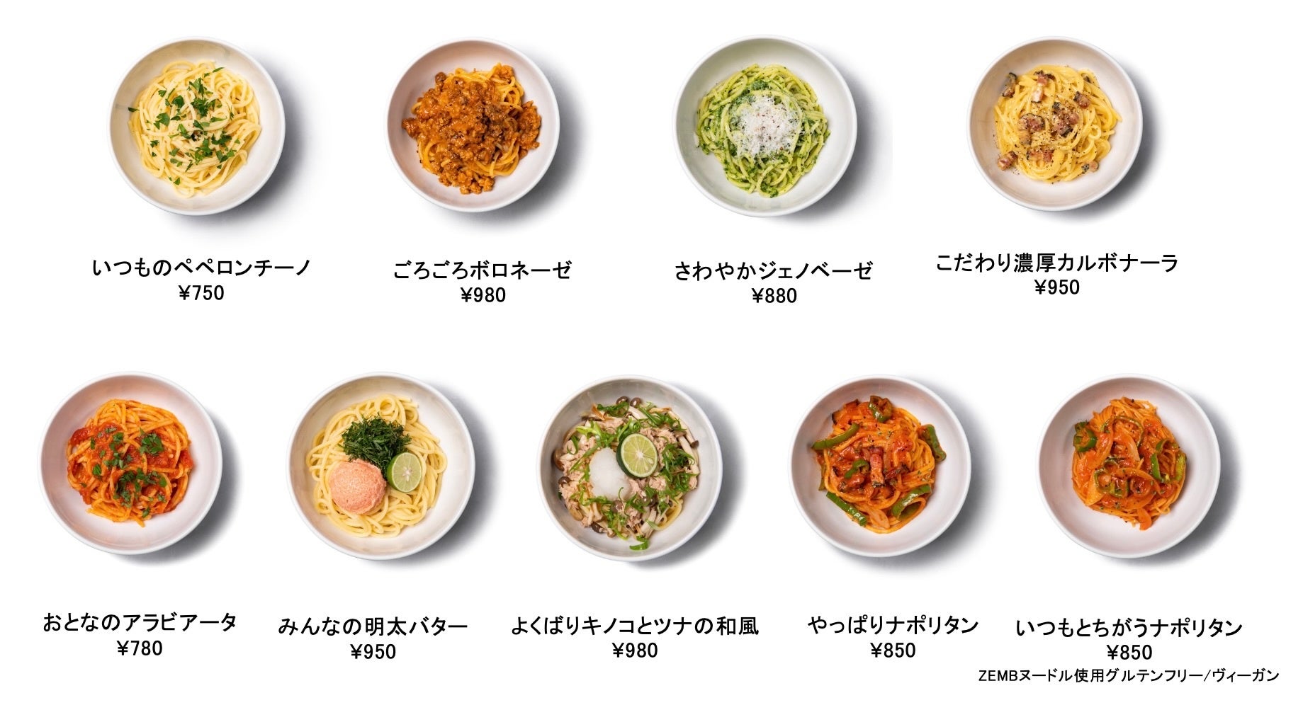 クイックに提供されるベースとなるパスタは「ごろごろボロネーゼ」や「こだわり濃厚カルボナーラ」、「やっぱりナポリタン」など9種類をご用意。より美味しく、無限の組み合わせを叶える「削りたてパルミジャーノ」「納豆」「フライドガーリック」ほか、変わり種の「オリエンタルラー油」「柴漬け」を含む30種類のトッピングで自分好みの味変をお楽しみください。また、新たな食文化の提案として釜玉うどんならぬ「釜玉パスタ」をモーニング限定でメニューイン。専門店ならではのラインナップで毎日食べたくなるパスタをご提供致します。