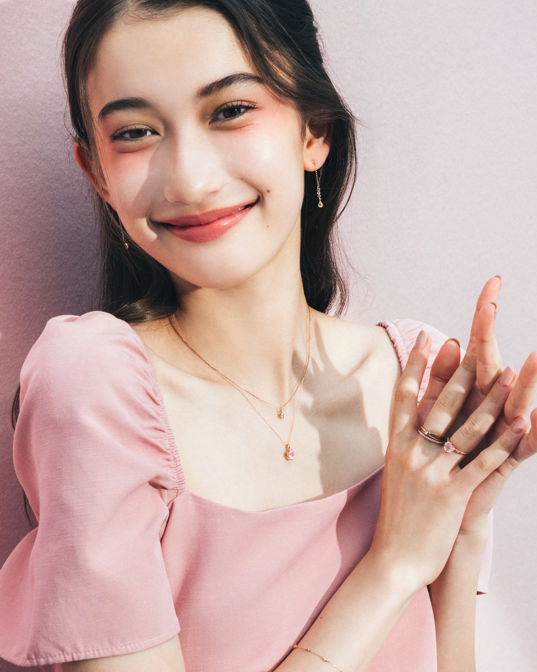 ピアス¥15,400<K10PG/ローズクォーツ/アメシスト/ホワイトトパーズ/ピンクトルマリン> ネックレス上から¥11,000<SV925(ピンクゴールドメッキ)/キュービックジルコニア>(2024年1月8日までの期間限定価格) ¥36,300<K10PG/ローズクォーツ/ダイヤモンド> リング左から¥49,500<K18PG/ダイヤモンド> ¥62,700<K18PG/ダイヤモンド> ¥41,800<K10PG/ローズクォーツ/ダイヤモンド> ブレスレット¥46,200<K18PG/ダイヤモンド>