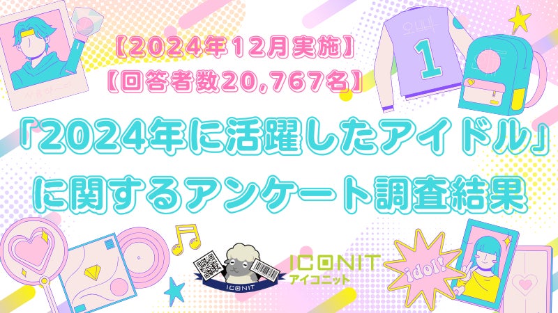株式会社メディアシークが提供する累計3,600万DL超スマートフォンアプリ「QR/バーコードリーダー・アイコニット」内で、アプリユーザーを対象に毎日実施しているアンケート「アイコニット・リサーチ」において、「2024年に活躍したアイドル」に関するアンケートを20,767名に対して2024年12月30日に実施いたしました。