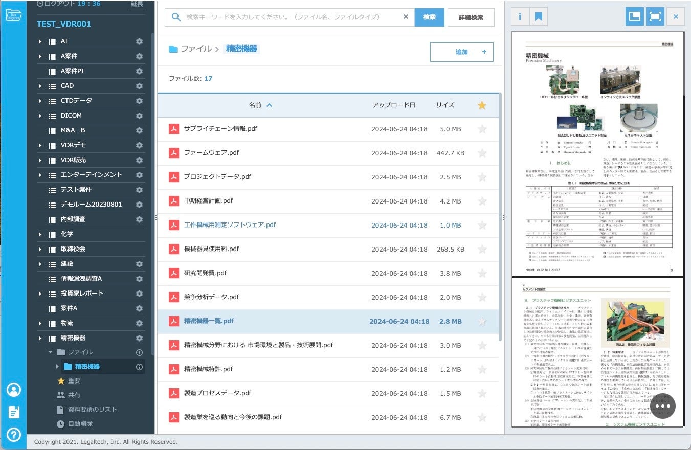 リーガルテックVDR(Virtual Data Room)は、精密機器業界が抱える課題に対して以下のようなソリューションを提供できます。