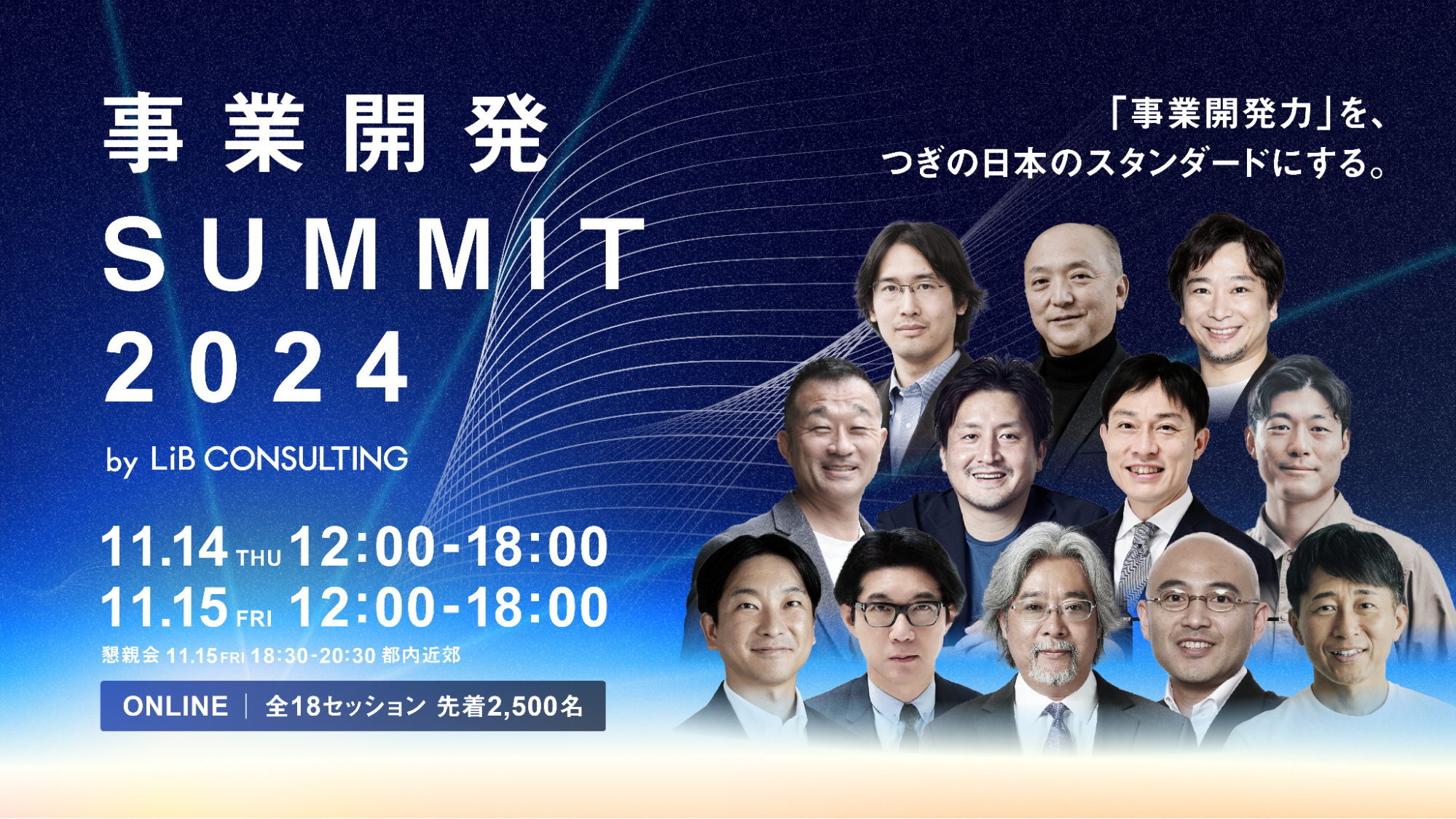 【11/14、15開催】リブ・コンサルティング「事業開発SUMMIT 2024」登壇者の最新情報を追加公開、全19セッション、総勢42名の事業開発トップリーダーが登壇が決定