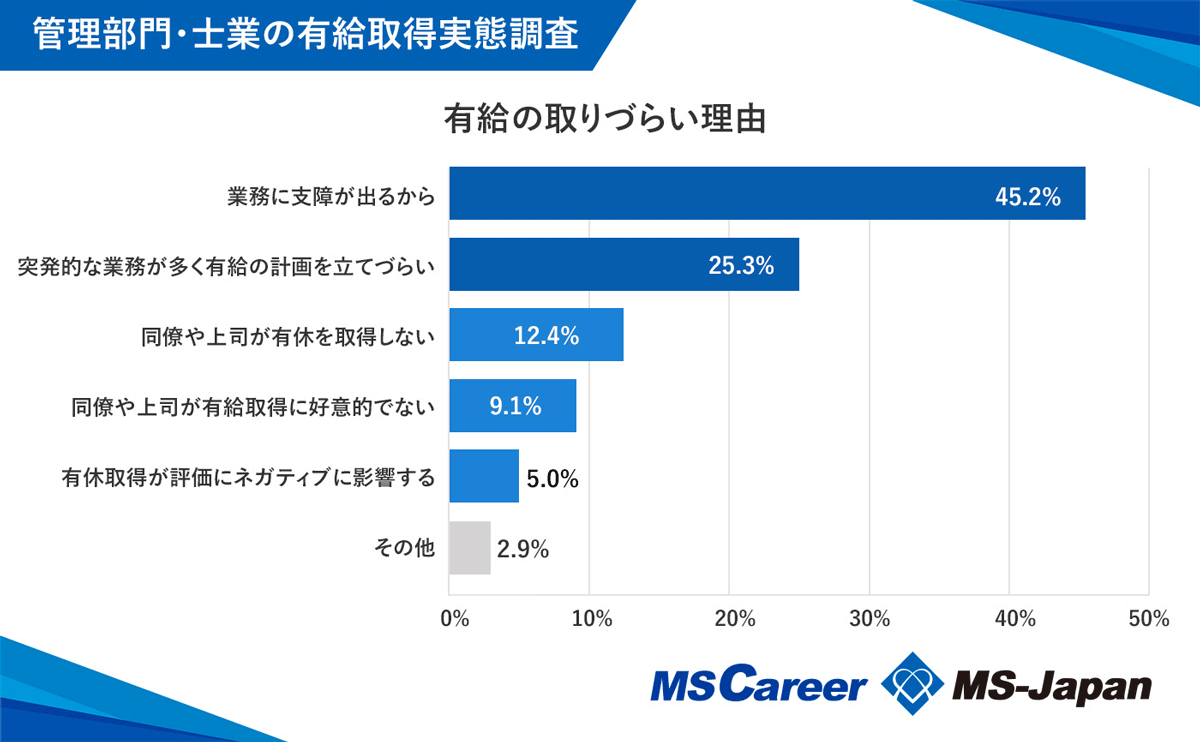 有給が取りづらい理由1位は「業務に支障(45%)」