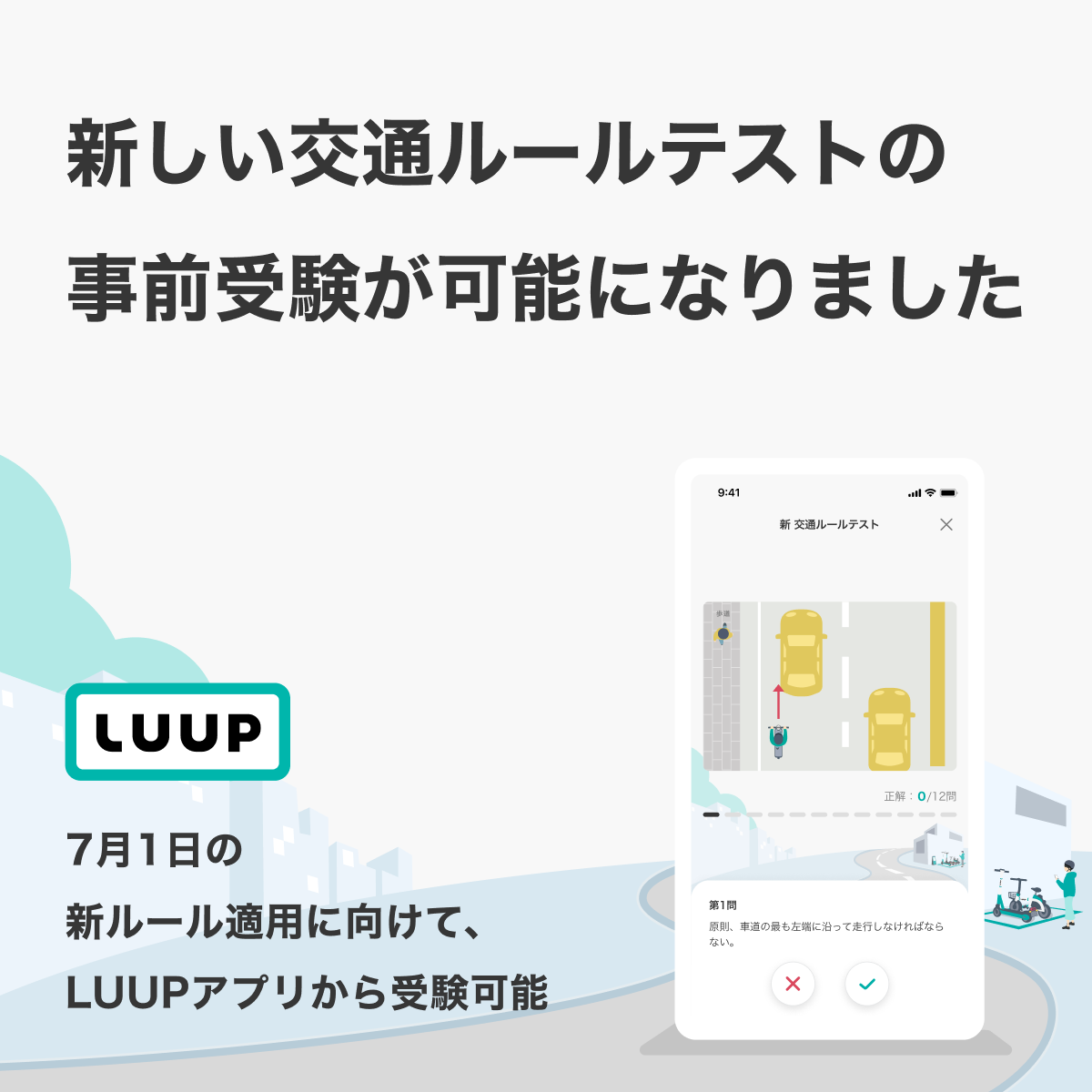 7月1日の新ルール適用に向けて、LUUPの交通ルールテストの事前受験が可能になりました