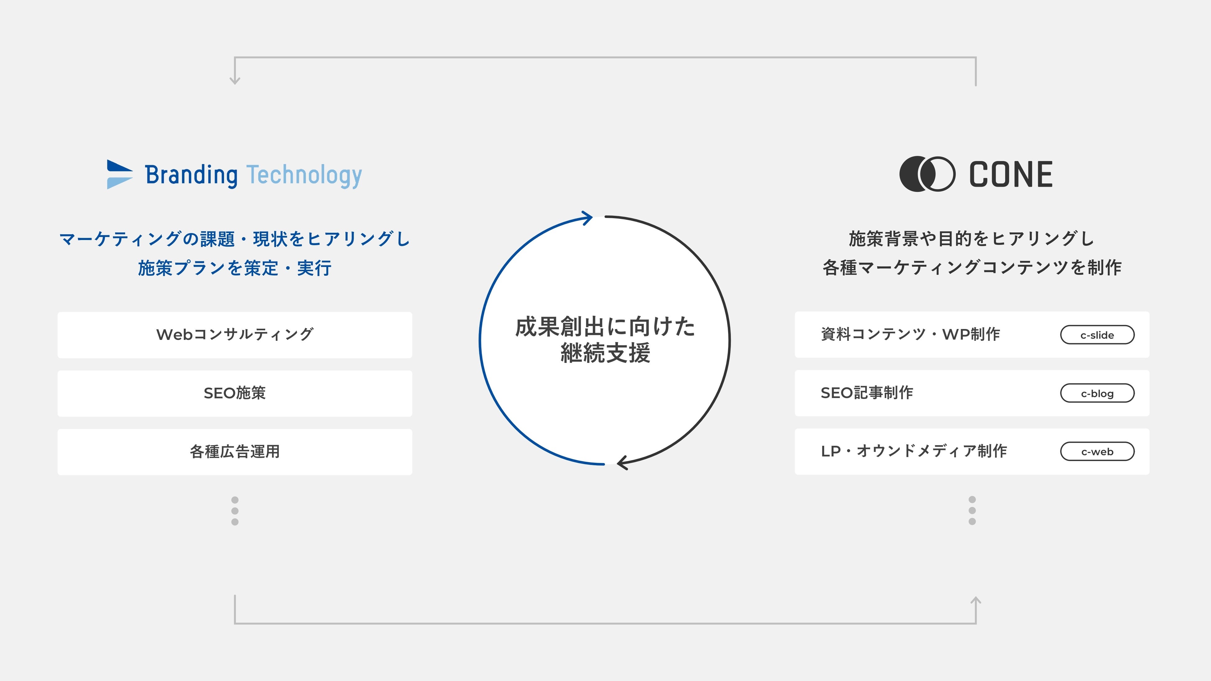 ブランディングテクノロジー、コンテンツ制作を行うCONE(コーン)と業務提携~広告、コンテンツ、SEO、各種制作を横断した高効率の実行支援を~