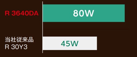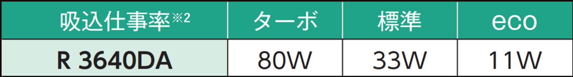 当社従来品R 30Y3と比較し、ターボモード時の吸込仕事率が約1.8倍向上しています。