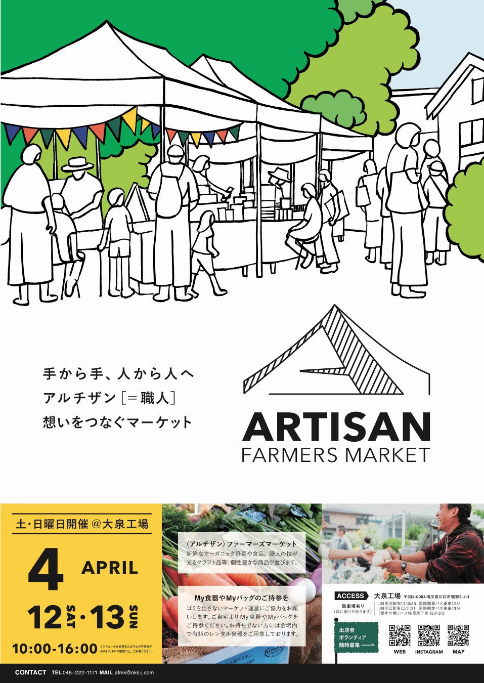 2025年4月12日(土)・13日(日)の2日間、株式会社大泉工場(本社:埼玉県川口市、代表取締役:大泉寛太郎)は、2025年4月12日(土)・13日(日)の2日間、昨年10月以来の開催となる『(ARTISAN) FARMERS MARKET KAWAGUCHI』を開催いたします。