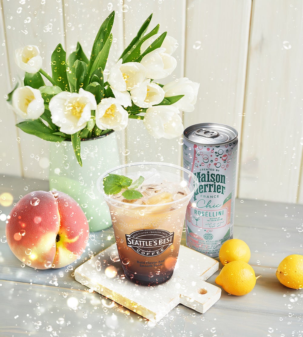 シアトルズベストコーヒーが、メゾンペリエ シック ロゼリーニを使用した「ピーチレモンティーソーダ」を期間限定販売!