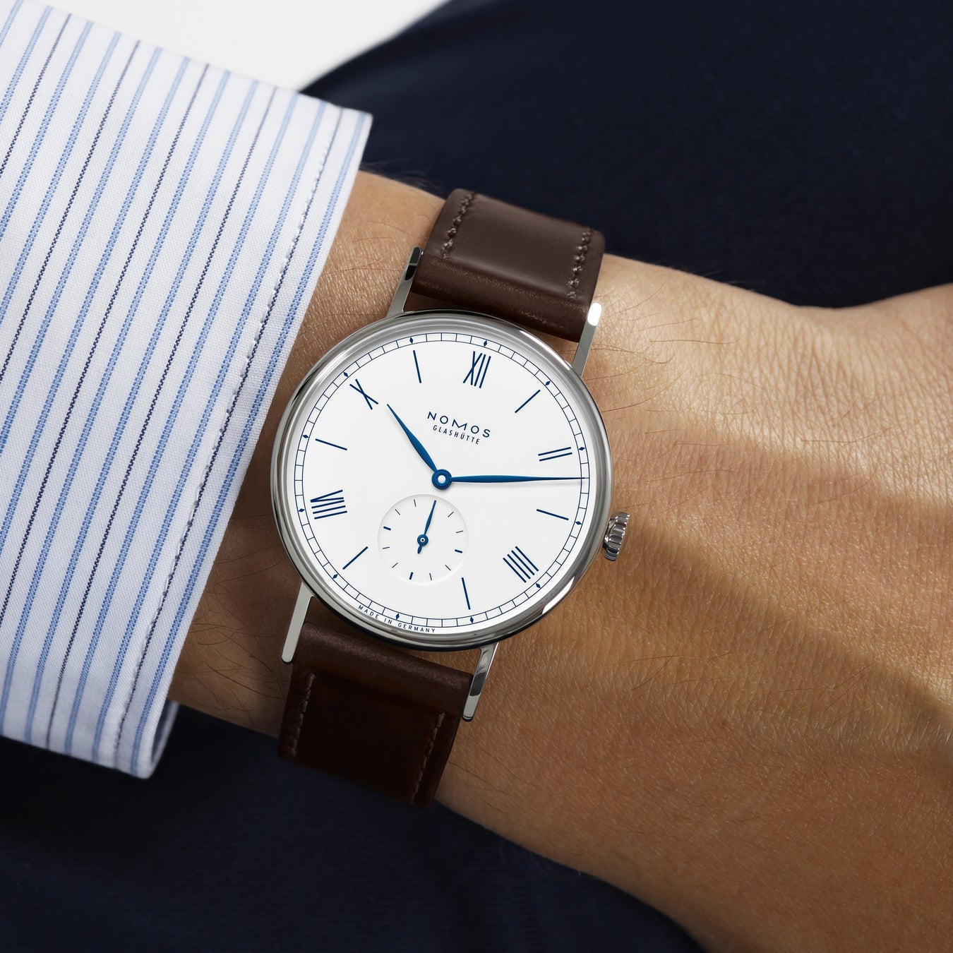 白と藍のコントラストに、NOMOSのクリエイションスピリッツがディテールにまで透徹する美しいドレスウオッチ。