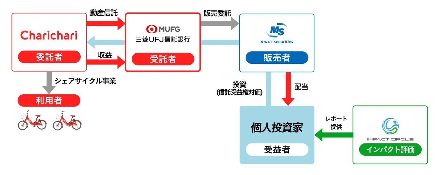 チャリチャリ×三菱UFJ信託銀行×インパクトサークル×ミュージックセキュリティーズの4社が連携し、地域の課題を地域の投資で解決する国内初の金融モデルを実現