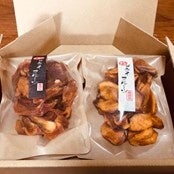 たねなし柿100g×2袋 富有柿100g×2袋の計4袋の食べ比べセットになっています。柿を乾燥させることによって甘みと旨みが凝縮されクセになる味‼︎ヨーグルトに一晩漬けて食べるとまた違った食感も楽しめて、便秘解消にも◎