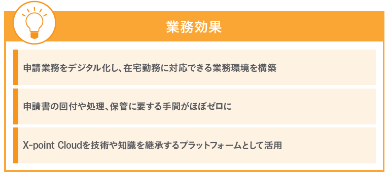 システムを全社展開し、申請業務のデジタル化および効率化を達成したほか、X-point Cloudを情報プラットフォームとしても活用