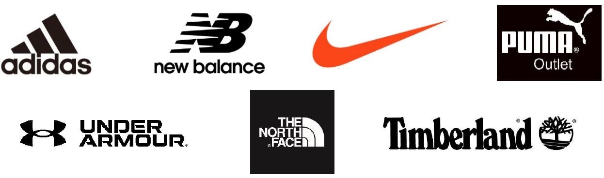「adidas」「new balance」「Nike」「PUMA」「UNDER ARMOUR」や、「THE NORTH FACE」「Timberland」等の人気スポーツ・アウトドアブランドが勢ぞろい。