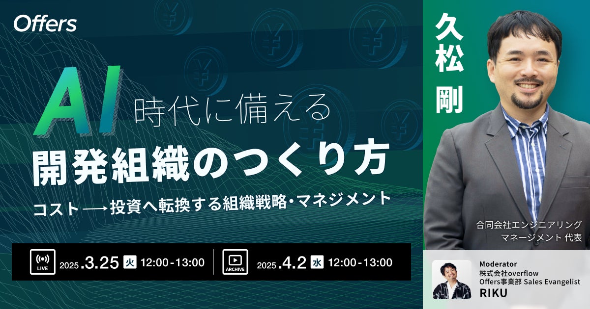 【直近開催予定】AI時代に備える「開発組織のつくり方」〜コスト→投資へ転換する組織戦略・マネジメント〜|3/25(火)・4/2(水)開催