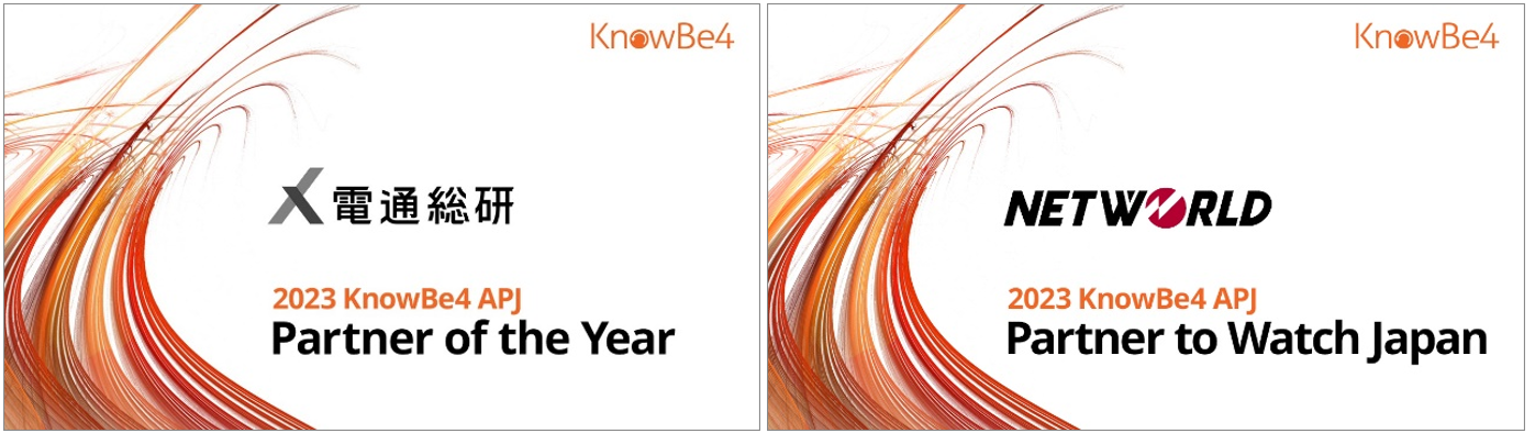 この年間パートナー表彰プログラムは、販売/マーケティング活動における優れた業績を達成したKnowBe4のチャネル販売パートナーを表彰するものです。KnowBe4は、アジア太平洋/日本地域へ積極的に投資し、事業を拡大してきています。これに伴うアジア太平洋/日本地域のパートナービジネスの業績好調を受けて、KnowBe4は、昨年に続き、アジア太平洋/日本地域の年間パートナー表彰プログラムを実施しました。日本の販売パートナー2社を含むアジア太平洋/日本地域の販売パートナー6社が選出されました。日本からは、アジア太平洋/日本地域の年間最優秀パートナーアワード(パートナー・オブ・ザ・イヤー)に 株式会社電通総研様が、また、各地域で注目すべき顕著な業績を達成したパートナー様のアワード(パートナー・ツー・ウオッチ:Partner to Watch - Japan)に株式会社ネットワールド様が選定されました。