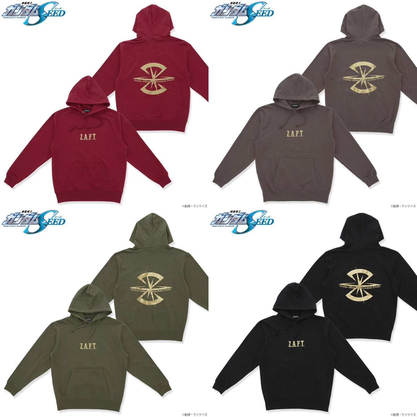 「Z.A.F.T.」メンバーをイメージしたボディカラー『機動戦士ガンダムSEED』Z.A.F.T.マーク ゴールドプリントパーカーが登場!