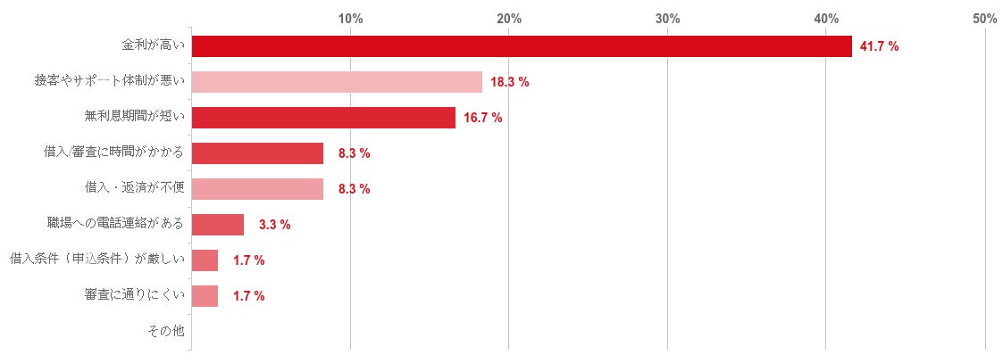 一方、アイフルの改善点には、「金利が高い」ことや「接客やサポート体制が悪い」ことなどが多く挙がった。
