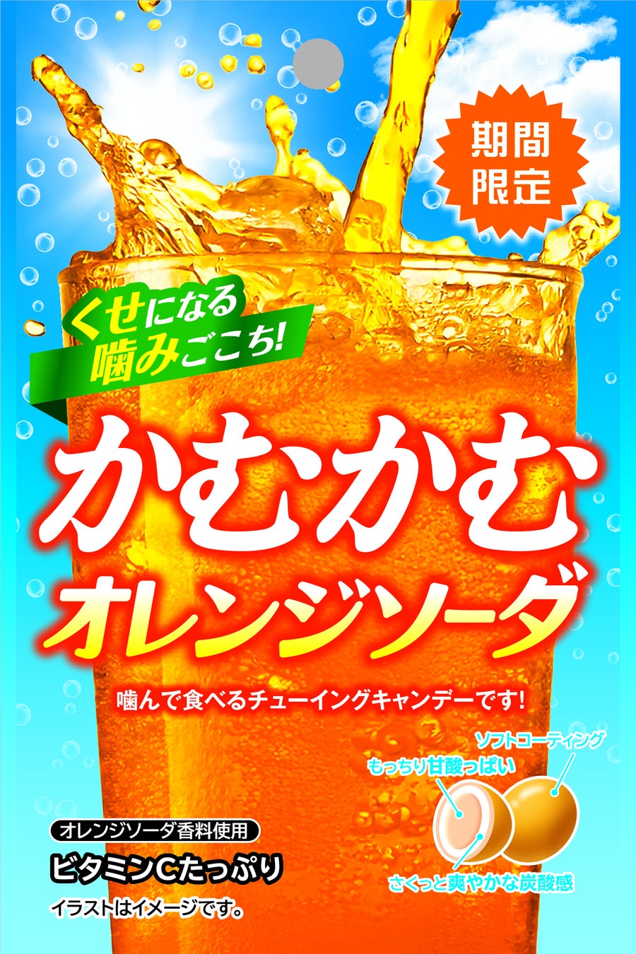 かむかむシリーズの中で人気が高まっている炭酸フレーバーと、暑い夏に食べたくなる爽やかで甘酸っぱい味わいの「オレンジ」を組み合わせました。