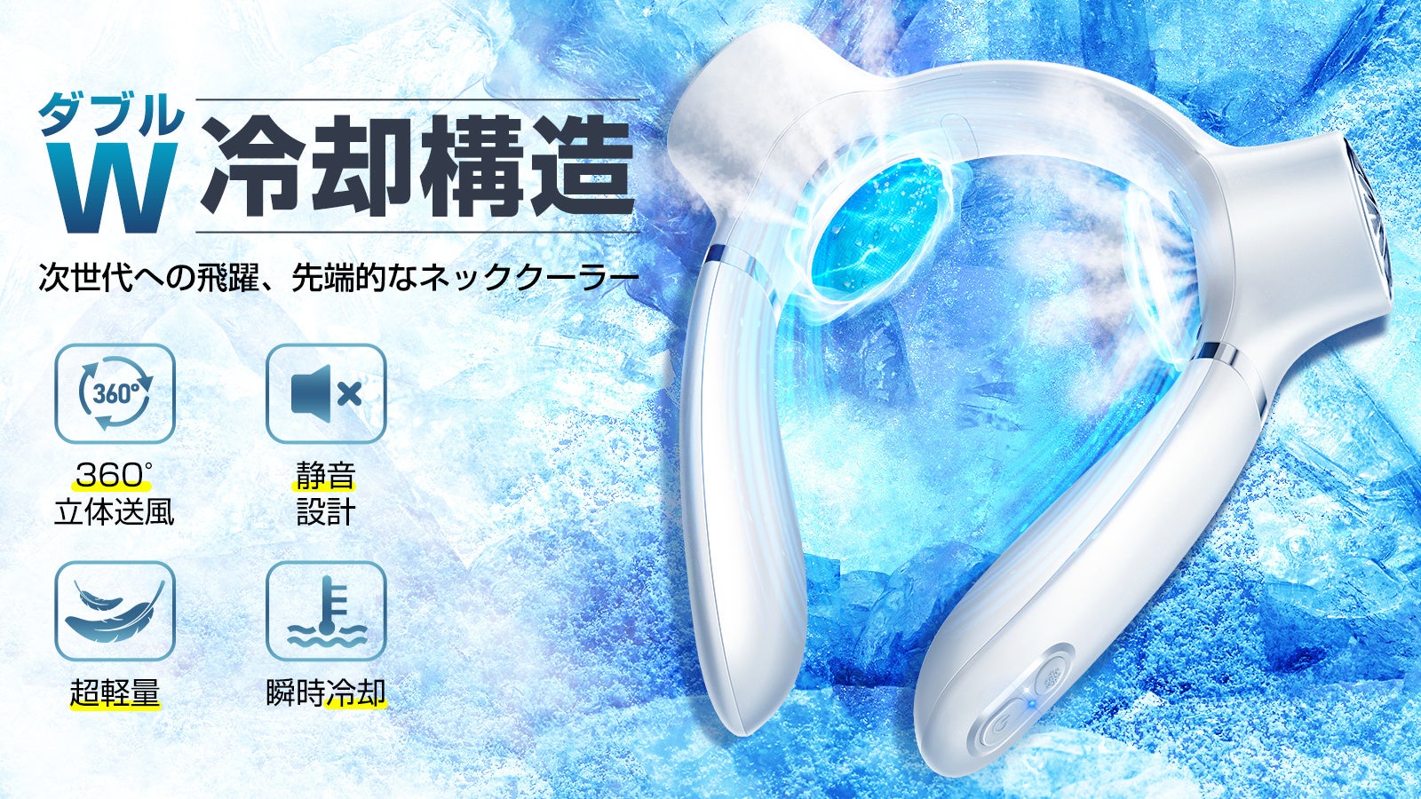 ◎ダブル冷却プレートと360°立体送風で、瞬時に首周りを涼しく保ちます。