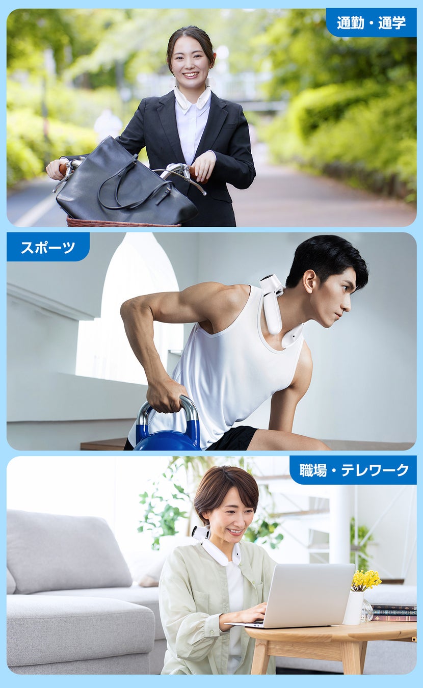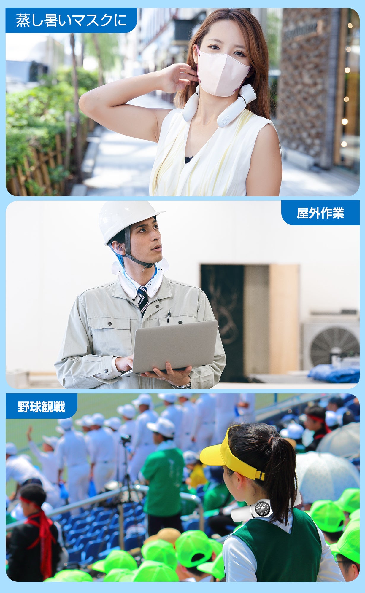 暑い季節の屋外作業やスポーツイベント、野外コンサート、キャンプなど、アウトドアアクティビティに最適です。また、通勤や通学中の電車やバス、オフィスでの長時間の作業や勉強中など、室内でも活用できます。