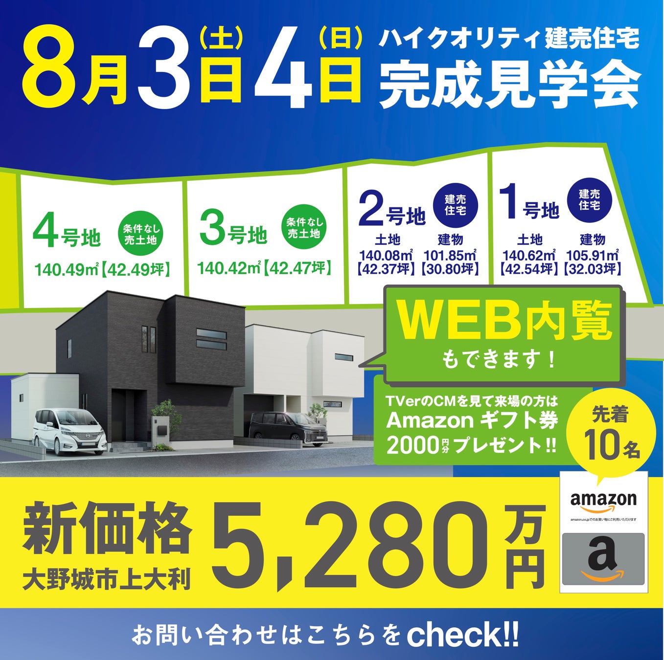 不動産資産管理会社の三和エステート株式会社 (本社:福岡市博多区博多駅南1丁⽬、代表取締役社⻑:⽯井 清悟)は、福岡県大野城市上大利に竣工した新築建売戸建「HAUS CONCEPT 上大利」と分譲地の価格を改定し、8月3日(土)・4日(日)に完成見学会を連日開催いたします。