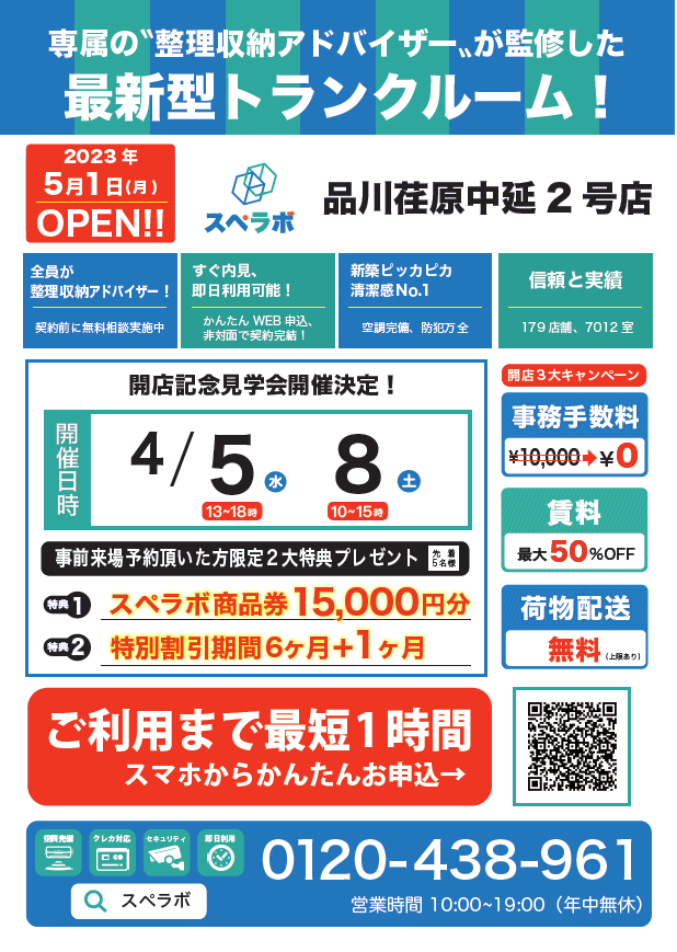 オープンに合わせ4月5日(水)・8日(土)に見学会を実施しますので、ぜひ【スペラボ・品川荏原中延2号店】にお越しくださいませ。