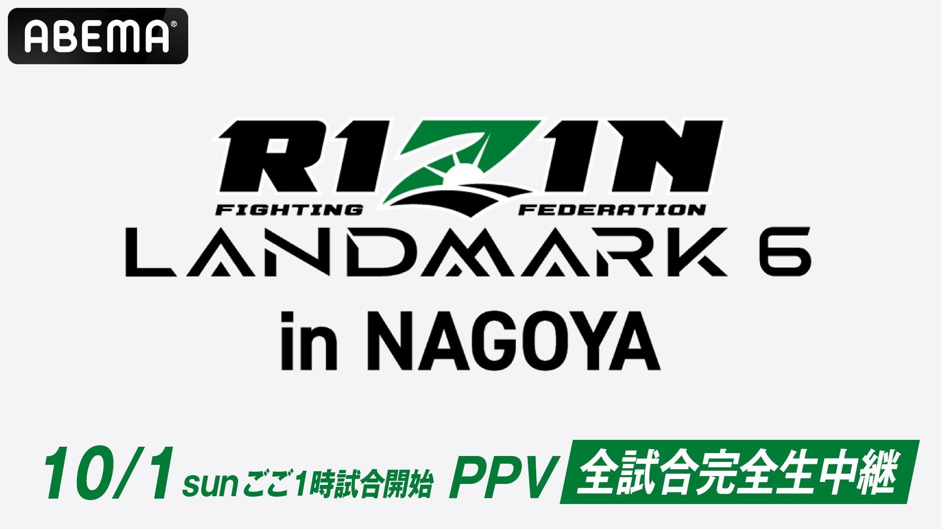 『RIZIN LANDMARK 6 in NAGOYA』(以下、『RIZIN LANDMARK 6』)を、2023年10月1日(日)13時より「ABEMA PPV ONLINE LIVE(アベマ ペイパービューオンラインライブ)」にて全試合生中継することを決定いたしました。また、本大会の視聴チケットを本日9月8日(金)12時より販売開始いたします。