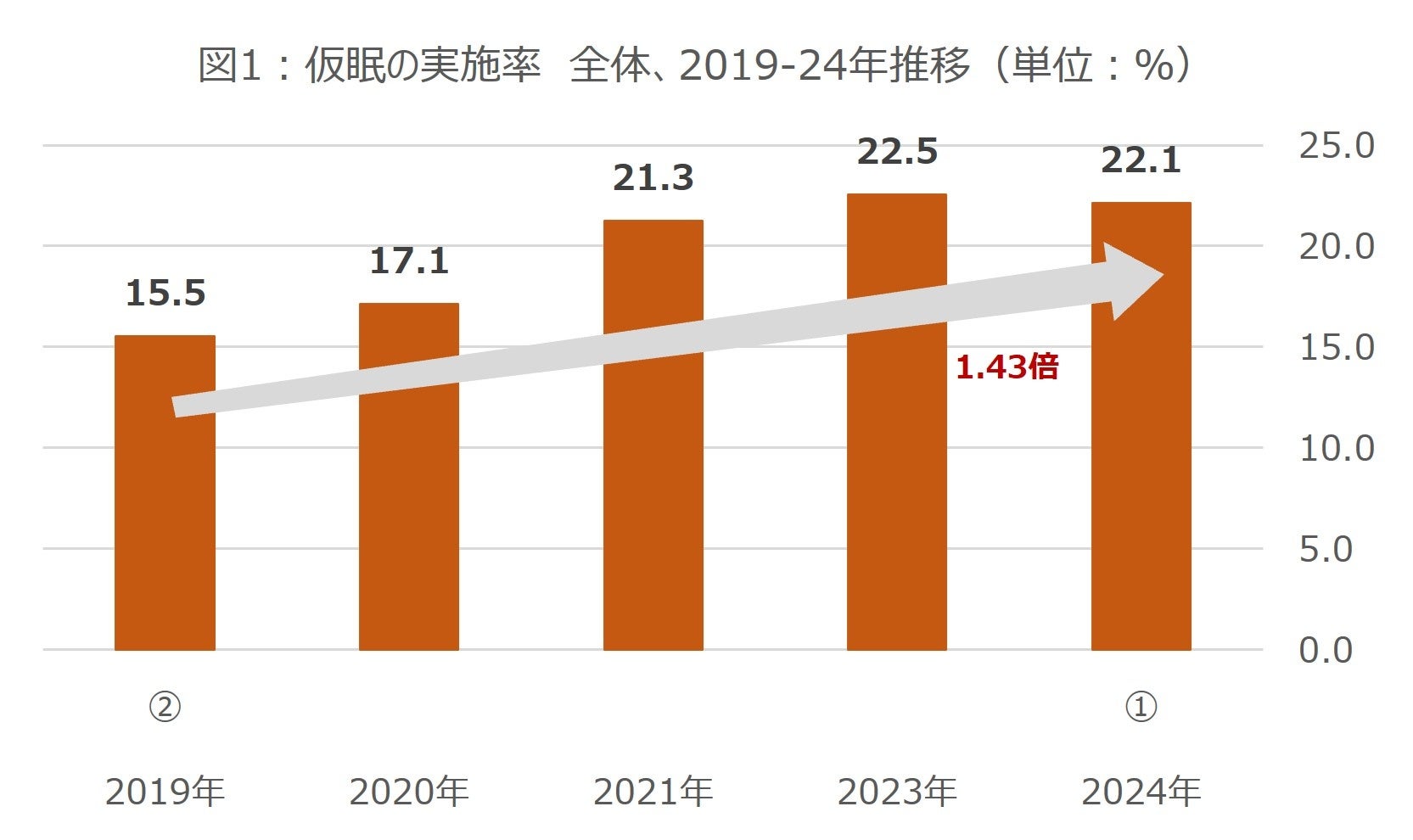 コロナ禍を経て、心身リカバリーを目的に、「仮眠」をとるように。男性で実施する人も大幅に増加