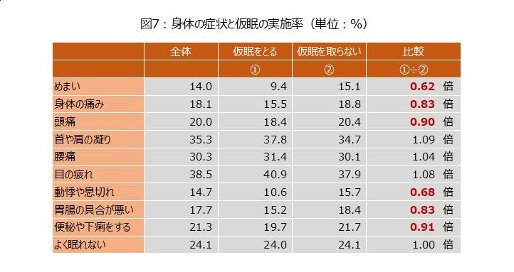 「仮眠」を取る人の方が、身体の悩み症状が少ない傾向に。疲労で悩む現代人のソリューションに提案