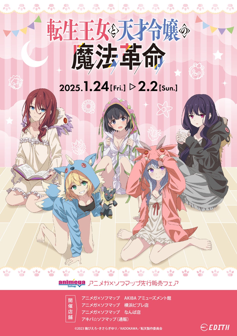 TVアニメ「転生王女と天才令嬢の魔法革命」より、新規描き下ろしのオリジナルイラストを使用したグッズが、アニメガ×ソフマップで先行販売決定!