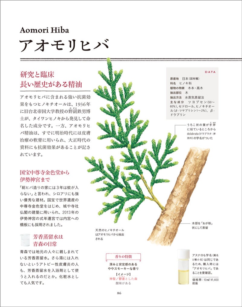 第2章 日本の精油18種 アオモリヒバ/クスノキ/クロモジ/ゲットウ/コウヤマキ/サンショウ/スギ/トドマツ/ハッカ/ヒノキ/ユズ など