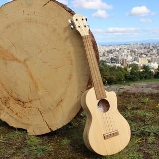 北海道のエゾマツでつくったウクレレで楽器をはじめてみませんか?参加される方にはウクレレをお貸し出しいたします。音楽初心者もまず1曲弾いてみましょう。
