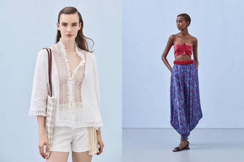 とことんリゾートルックを楽しみたい!という方には、リゾート気分を存分に盛り上げるアイテムもご用意しています。まるでバタフライのようにも見える立体的なシェイプが愛らしいブラトップは、背中でジップアップ開閉をする仕様。上にカーディガンやシャツを羽織ってモードに楽しむことができます。ボタニカルプリントがリゾート気分を盛り上げるワイドパンツは、たっぷりとした生地使いと豊かなプリーツが特徴で一見ロングスカートのように見える1着です。
